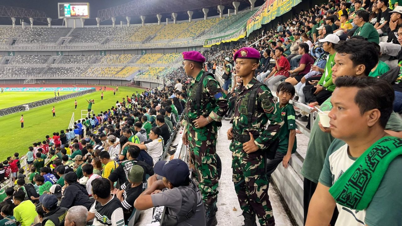 HANTANEWS TNI Angkatan Laut Dispen Kormar (Surabaya). Prajurit Kesatria Perkasa Batalyon Kapa 2 Marinir turut serta melaksanakan pengamanan pertandingan sepak...