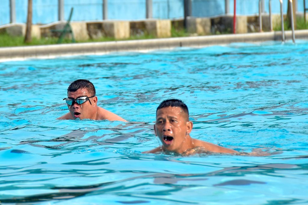 Perwira Brigif 2 Marinir melaksanakan latihan Renang Ketahanan di Kolam Renang Tirto Sagoro 14 Kesatrian Marinir R. Suhadi Gedangan, Sidoarjo, Jawa Timur. Rabu (07/01/2026).