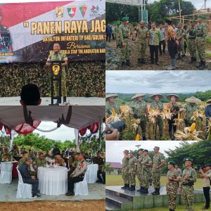 Kegiatan ini juga dihadiri Bupati Lebak Moch. Hasbi Asyidiqi Jayabaya sebagai wujud sinergi antara TNI Angkatan Darat dan pemerintah daerah dalam mendukung pembangunan wilayah dan pemberdayaan masyarakat, yang ditandai dengan panen raya, peninjauan peternakan, serta penyerahan bantuan sembako secara simbolis kepada warga sekitar. (Dispenad/Ricky)