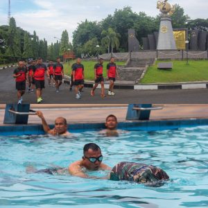 Komandan bersama Perwira Menkav 2 Mar melanjutkan kegiatan dengan melaksanakan olahraga, tour vacility meninjau langsung lingkungan kesatrian, guna memastikan seluruh sarana pendukung dalam kondisi siap, dan memastikan materi latihan berjalan sesuai program dan standar operasional dalam mendukung kesiapan tempur prajurit Kavaleri Korps Marinir, salah satunya renang ponco melatih profesionalisme prajurit.