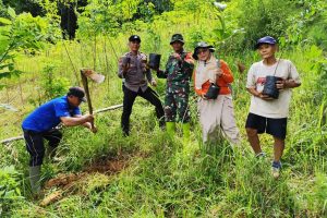 “Hari ini kami melaksanakan penanaman bibit pohon aren, pohon pucung, pohon ringin, pohon sonokeling, dan pohon alpukat,” ujar Sertu Zaenal. Ia menjelaskan, jenis tanaman tersebut memiliki fungsi ekologis yang kuat untuk menjaga struktur tanah, menyimpan cadangan air, serta memberikan manfaat ekonomi bagi masyarakat di masa depan.