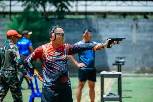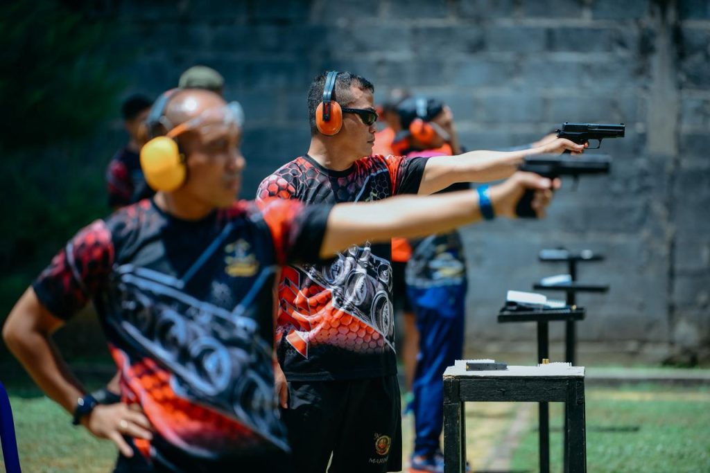 Komandan Resimen Kavaleri 2 Marinir (Danmenkav 2 Mar) Letkol Mar Dr. Iwan Permana, S.H., M.Tr.Opsla. bersama seluruh Perwira di jajaran Menkav 2 Mar mengasah akurasi bidikan dalam latihan menembak pistol yang diselenggarakan di lapangan tembak pistol Yonkapa 2 Mar, Trian Mar Soepraptono, Semarung, Ujung, Surabaya. Rabu (21/01/2026).