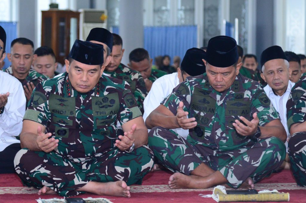 Panglima Korps Marinir (Pangkormar) Letnan Jenderal TNI (Mar) Dr. Endi Supardi, S.E., M.M., M.Tr.Opsla., CHRMP., CRMP., didampingi Kepala Staf Korps Marinir (Kas Kormar) Mayor Jenderal TNI (Mar) Suherlan, S.E., M.M., M.Sc., CRMP., bersama para Pejabat Utama Mako Kormar, seluruh prajurit, serta PNS Mako Kormar mengikuti peringatan Isra’ Mi’raj Nabi Muhammad SAW 1447 Hijriah / 2026 Masehi yang dilaksanakan di Masjid At-Taqwa Mako Kormar, Kesatrian Marinir Jenderal KKO Ali Sadikin, Jakarta Pusat, Rabu (21/01/2026).