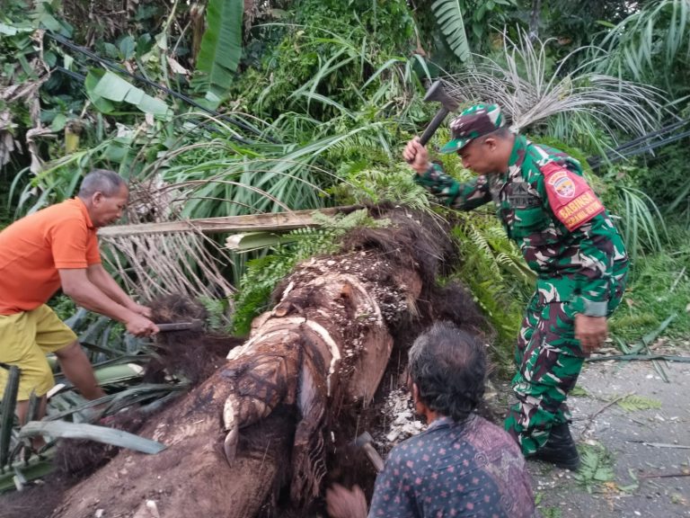 Hantanews Bangli – Babinsa Desa Tembuku Koramil 1626-03/Tembuku, Serda Sang Komang Teg Redana, bergerak cepat membantu evakuasi pohon enau/aren yang...
