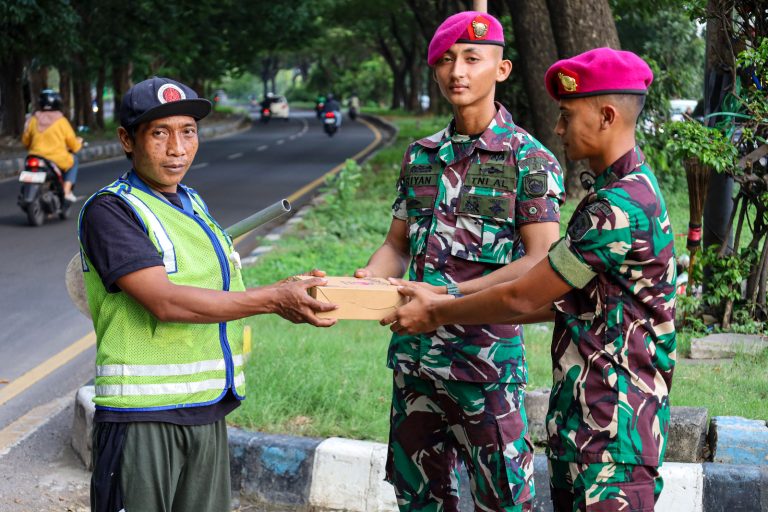 HANTANEWS TNI Angkatan Laut, Dispen Kormar (Sidoarjo). Prajurit Batalyon Infanteri 3 Marinir berbagi Takjil kepada Masyarakat di wilayah Sidoarjo, Jawa...