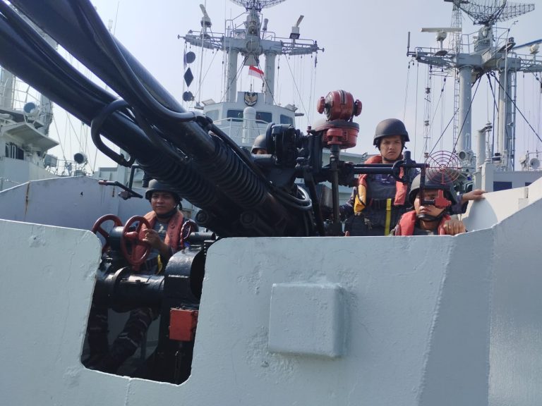 Hantanews Surabaya,Kapal perang jajaran Satuan Kapal Bantu Koarmada I, KRI Teluk Sibolga-536, melaksanakan Latihan Peran Tempur Bahaya Udara saat sandar...