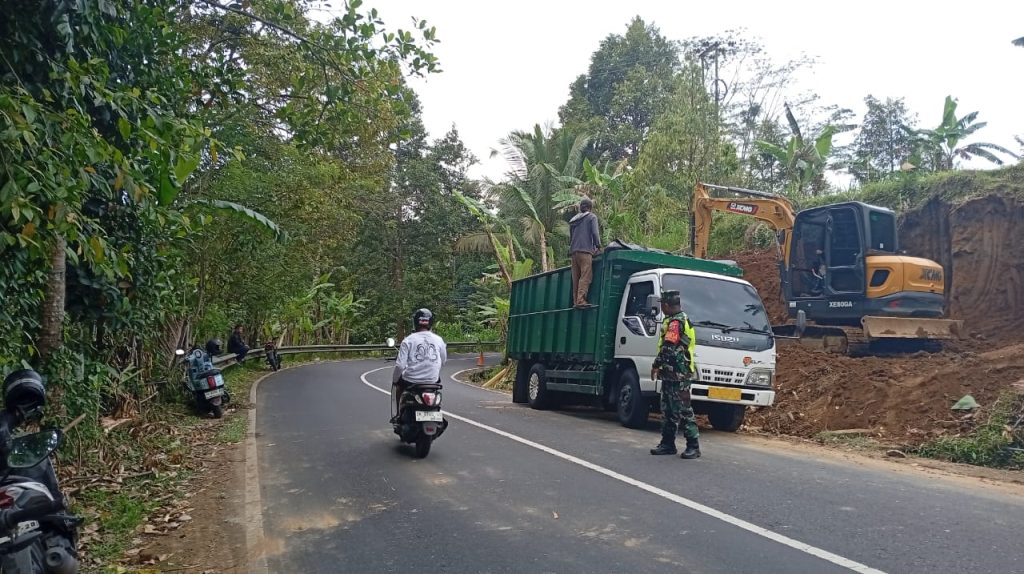 Di lapangan terlihat aktivitas alat berat berupa ekskavator yang melakukan pengerukan tanah serta kendaraan truk pengangkut yang keluar masuk area pengerukan. Untuk mengantisipasi terjadinya kemacetan maupun potensi kecelakaan lalu lintas, Babinsa turut membantu mengatur arus kendaraan yang melintas di jalur tersebut.