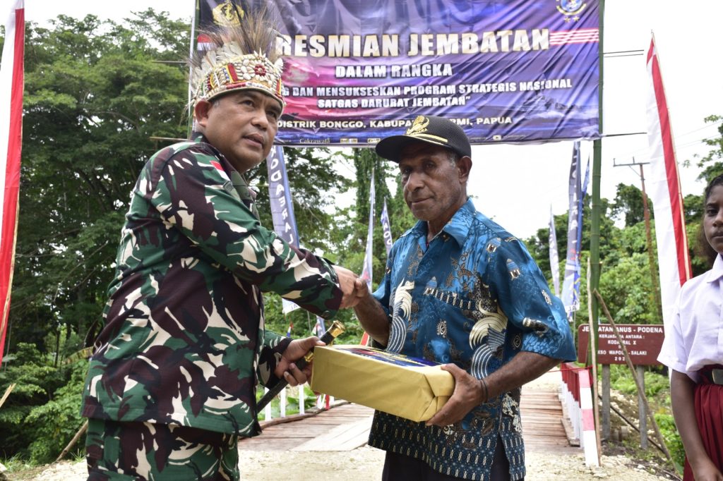 TNI AL terus menunjukkan komitmennya dalam mendukung pembangunan wilayah serta memperkuat konektivitas di daerah pesisir dan kepulauan. Kali ini, Komandan Kodaeral X Mayjen TNI (Mar) Werijon, M.Han., meresmikan jembatan yang dibangun dalam rangka mendukung program strategis nasional Satgas Darurat Jembatan di Distrik Bonggo, Kabupaten Sarmi, Papua, pekan ini.