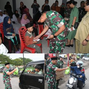 Tidak hanya itu, Dandim bersama Ketua Persit dan jajaran juga turut membagikan takjil kepada warga dan masyarakat sekitar yang melintas di lokasi kegiatan menjelang waktu berbuka puasa.