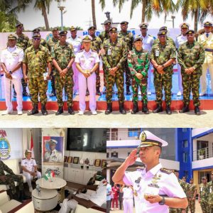 TNI AL terus memperkuat diplomasi maritim dan kemitraan strategis internasional dengan Angkatan Laut Nigeria melalui kunjungan kehormatan (courtesy visit) yang dilaksanakan oleh Komandan KRI Canopus-936 Kolonel Laut (P) Indragiri Yani saat sandar di Komando Armada Barat Angkatan Laut Nigeria dan diteima oleh Flag Officer Commanding Western Naval Command Nigerian Navy Rear Admiral A.A. Mustapha, pekan ini di Lagos, Nigeria.
