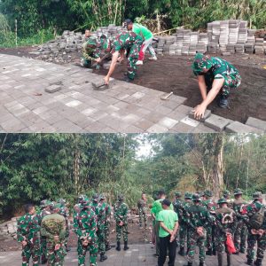 Danramil Bangli Pimpin Pemasangan Paving Blok