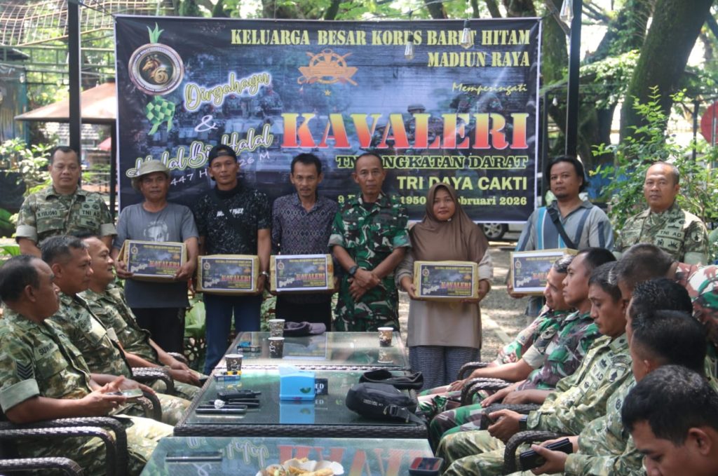 Hantanews Madiun – Prajurit Korps Kavaleri TNI AD di Madiun Raya memberikan bansos kepada masyarakat kurang mampu pada acara peringatan HUT ke-76 Kavaleri TNI AD sekaligus Halalbihal yang digelar di Ngrowo Bening Edu Park, Kota Madiun, Rabu (15/6/2026).
