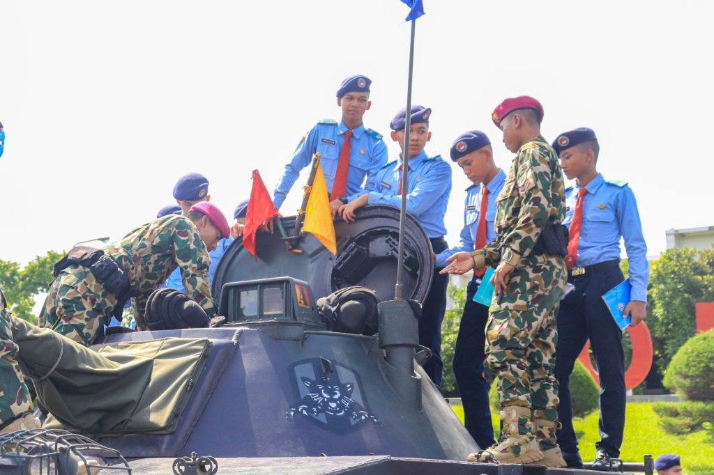 Bertempat di Kesatrian Marinir Sutedi Senaputra, Karangpilang, Surabaya, prajurit Batalyon Tank Amfibi 2 Marinir (Yontankfib 2 Mar) turut hadir berikan edukasi kepada siswa/siswi SMA Taruna Nusantara Kampus Malang. Kehadiran para prajurit Yontankfib 2 Mar kali ini tidak lain adalah untuk menanamkan benih kebanggaan dan nasionalisme melalui pengenalan Alat Utama Sistem Senjata (Alutsista) kepada para siswa. Surabaya, Jumat (24/04/2026).