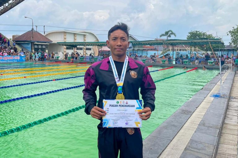 HANTANEWS TNI AL, Dispen Kormar (Sidoarjo). Atlet Renang Batalyon Infanteri 1 Marinir Serda Marinir Andi M. Nurrizki F. meraih 3...